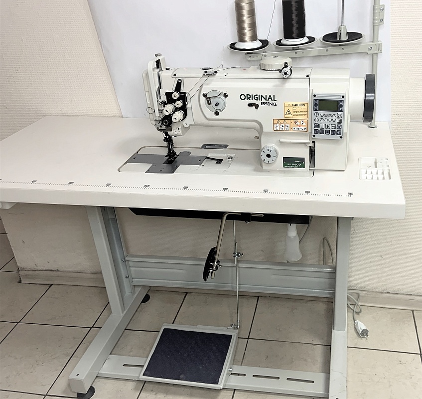 ORIGINAL R1560D Двухигольная, прямострочная промышленная швейная машина челночного стежка, с верхним, нижним и игольным продвижением материала, без отключающихся игл, со встроенным двигателем, С регулировкой скорости, позицией иглы и увеличенным горизонтально расположенным челноком, расстояние между игл 6,4 мм или 9,5 мм.